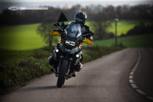 Pendant un temps, les concepteurs de la GS dessinaient leur moto en fonction du standard allemand, avec grandes pattes, grandes paluches de série. Ce temps est un peu révolu, la R 1250 GS est devenue assez accessible, notamment parce que le moteur Boxer n’impose pas une entre-jambe trop large. On peut arquer assez facilement, même avec une selle assez plate, pilote d’1,85m n’a aucun mal à toucher les deux pieds à plat, ça reste valable jusqu’à 1,75m, ensuite il faudra légèrement déhancher (hauteur de selle réglable 850/870 mm). L’ESA permet tout de même d’abaisser le châssis de quelques centimètres en choisissant la précontrainte la plus courte. Côté paluches, les grands formats seront plus à l’aise, surtout qu’il y a pléthore d’option sur cette série spéciale, et que les boutons ont poussés sur les comodos comme sur le faciès d’un pré-adolescent. La molette Multi-contrôleur associé à l’écran TFT facilite quand même la navigation, mais exécuter des taches sans y penser demande un peu d’habitude.
